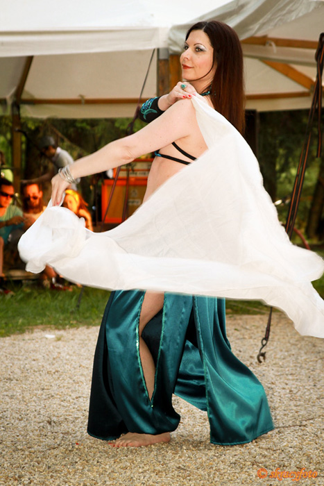 látványos fantáziatánccal (melyben kardot, ízisz-fátylat és poit